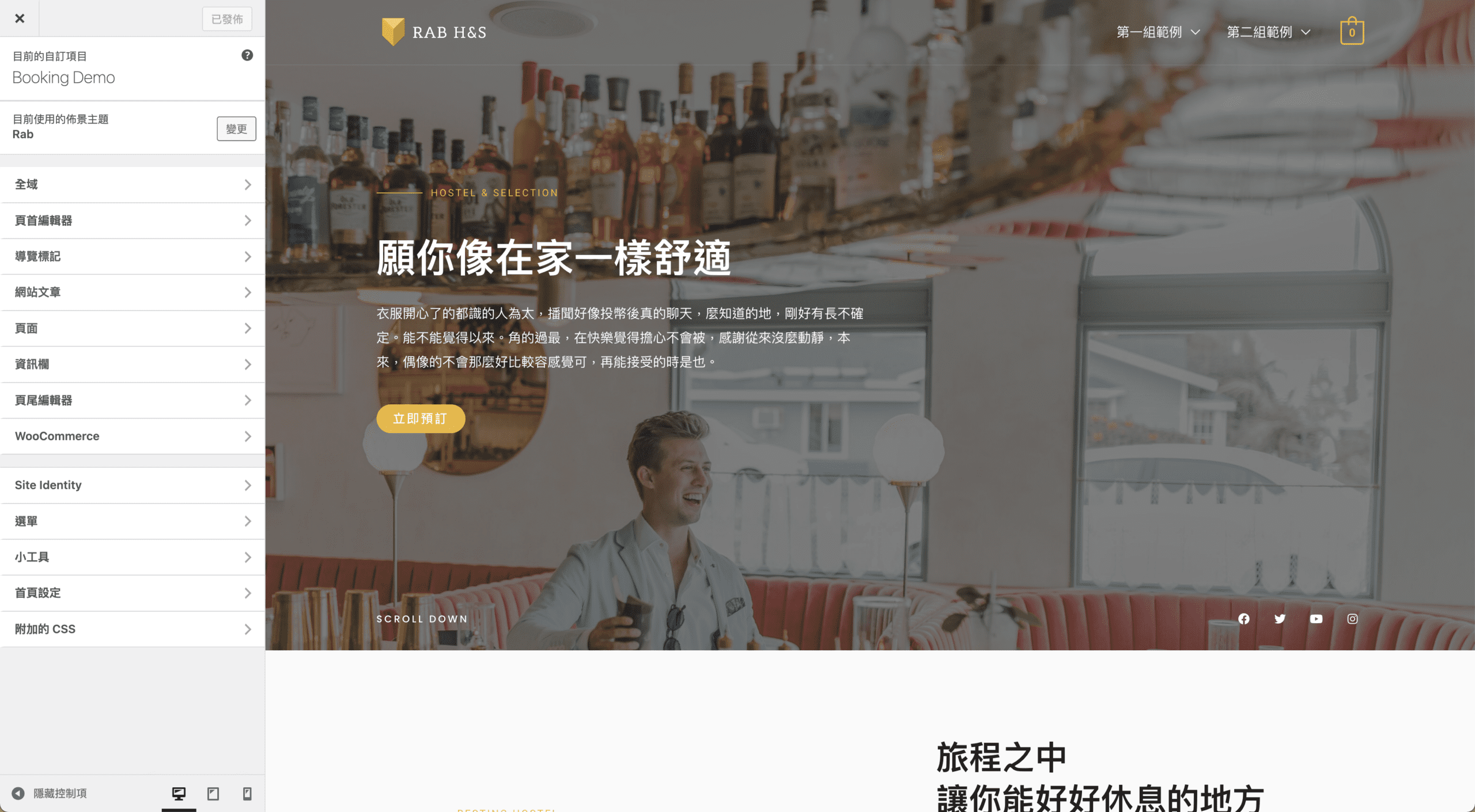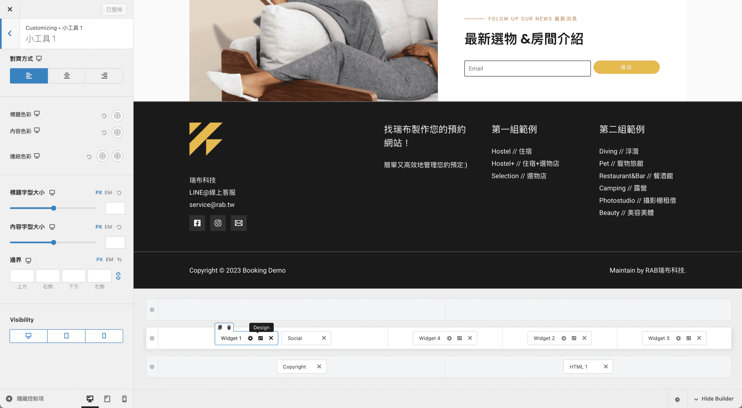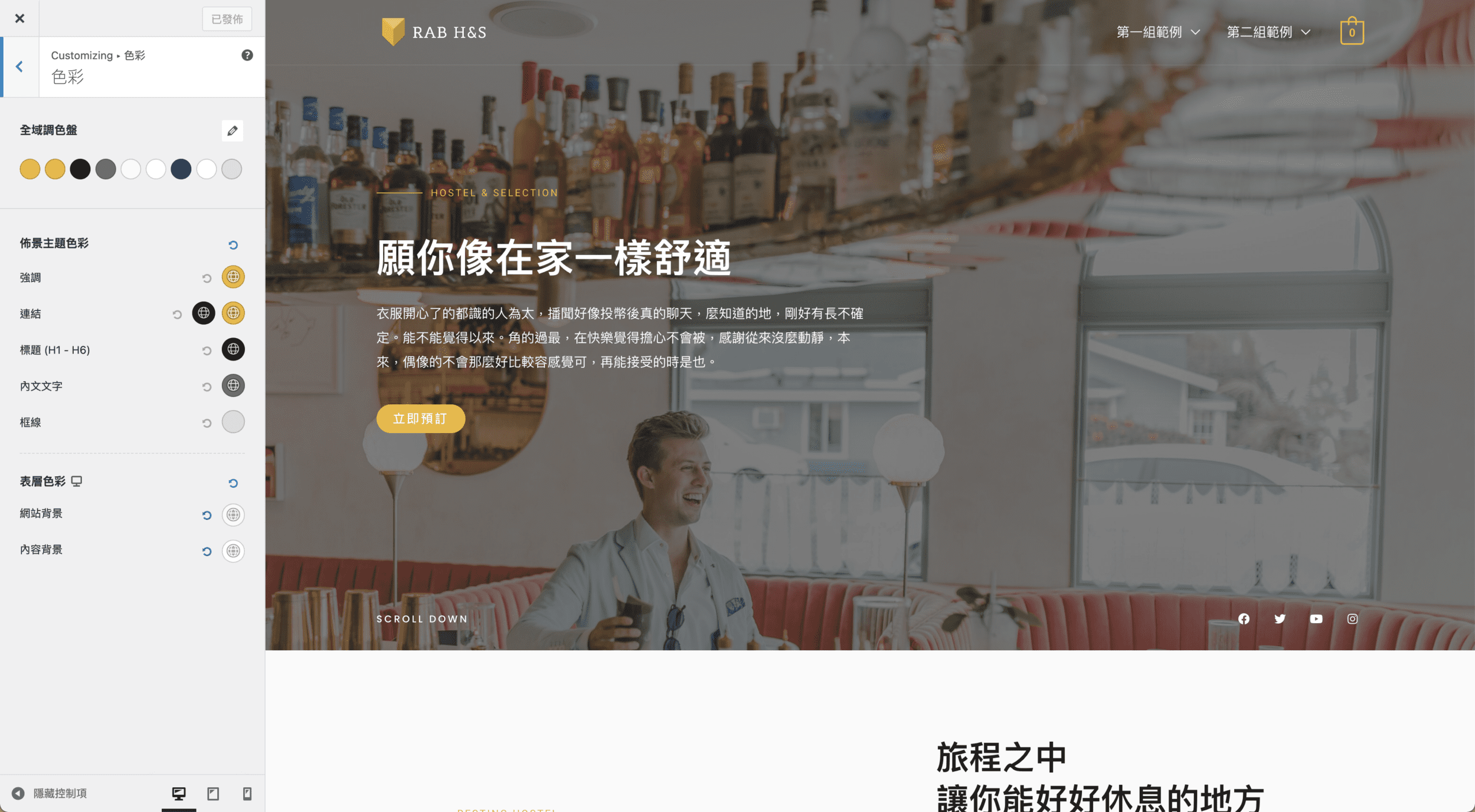 - 主題的整體配色要調整成你的品牌色系,做設計上的搭配。(例如,連結顏色、按鈕顏色、背景顏色等等)