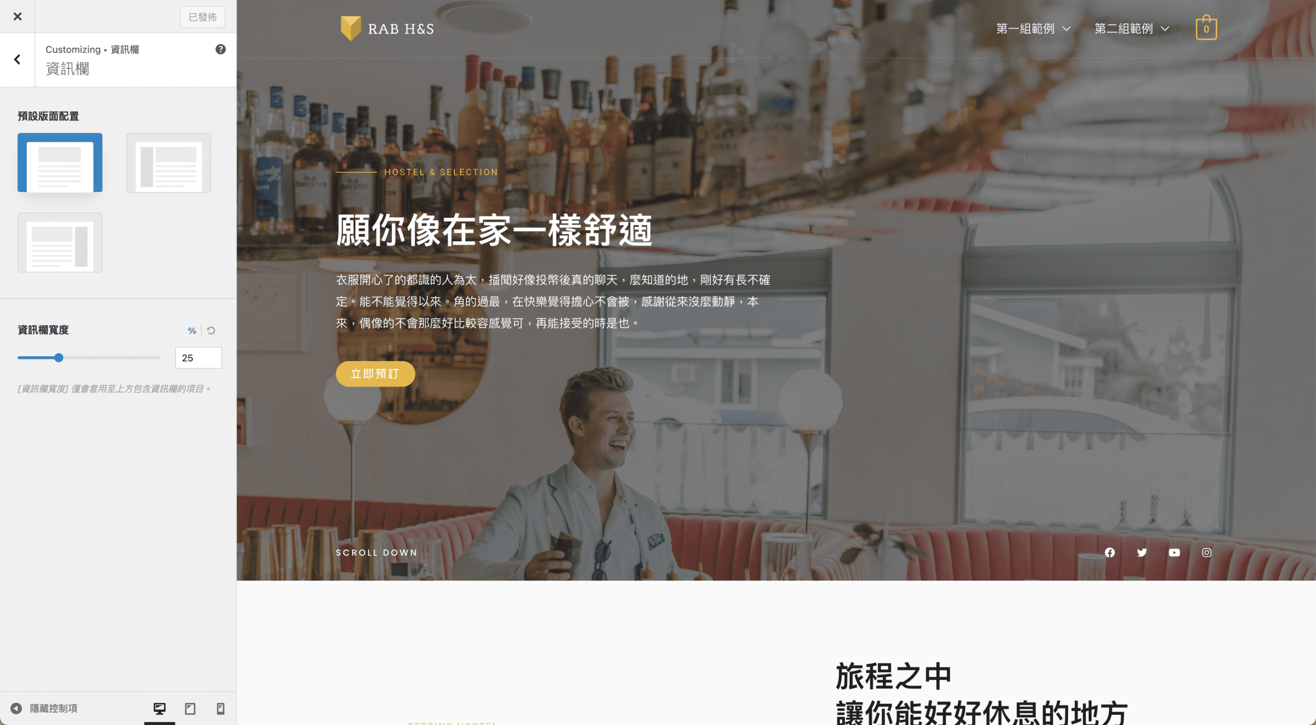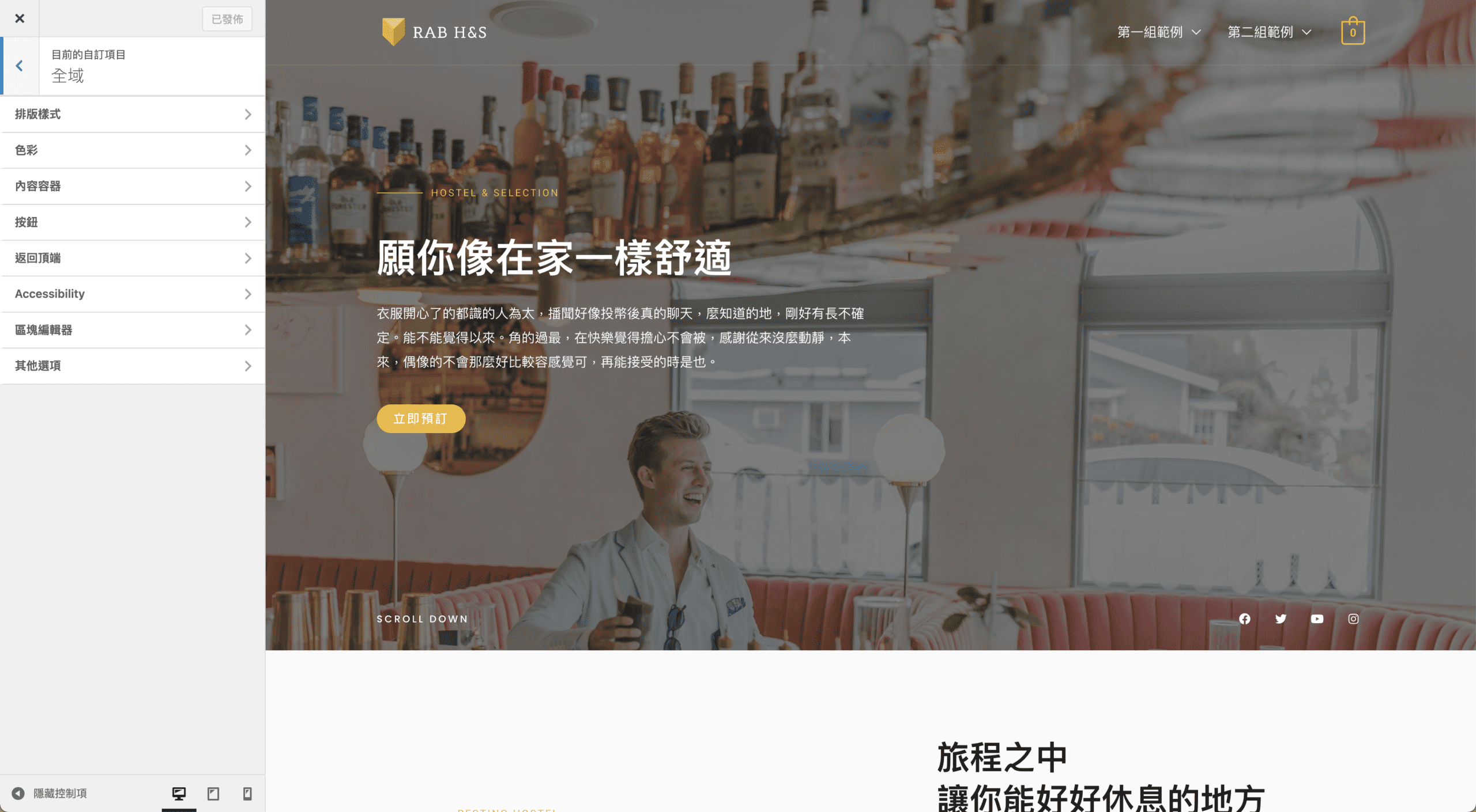 - 排版樣式:可以調整網站的預設字型、字體大小等等。