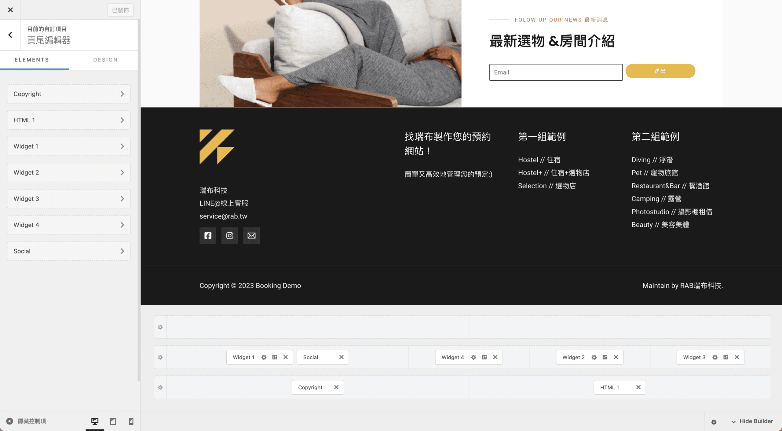 (若是在這裡修改前台沒有變動,您的網站頁尾可能是用 Elementor 製作的唷!可以至「範本」查看)