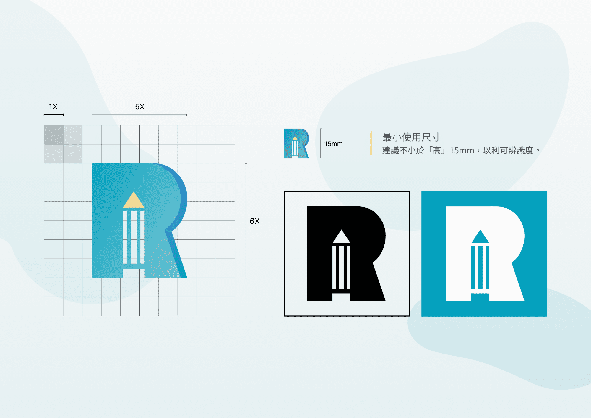 - 標誌使用規範(尺寸規範、黑白稿、反白稿)
