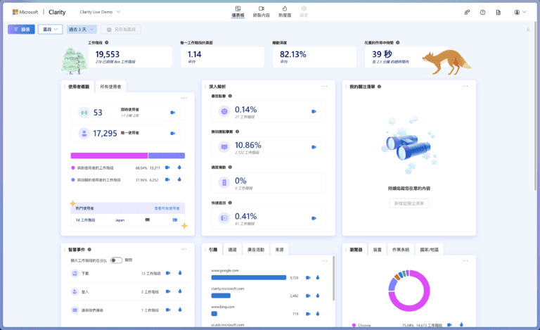 微軟 Clarity 是一個革命性的網站分析工具,專為提升用戶體驗和優化網站性能而設計。透過其高級的行為分析、熱度圖技術和工作階段錄製內容,Clarity 為網站管理者提供了深入的洞察,幫助他們精準了解訪客的互動和行為模式。