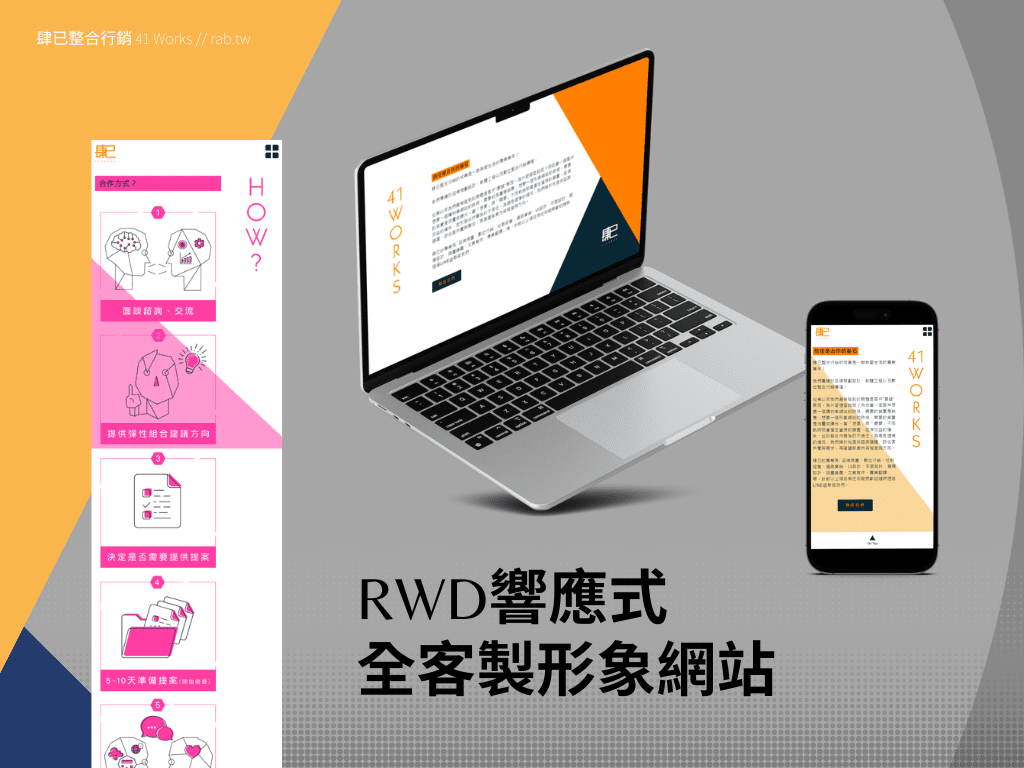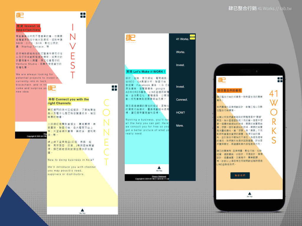此外,每個頁面的RWD響應設計都會自動切換,呈現出相同風格但細節不同的版面設計。我們的目標是為客戶提供令人印象深刻且獨特的網站,無論是在視覺呈現還是在用戶體驗上都能給予他們最佳的效果。