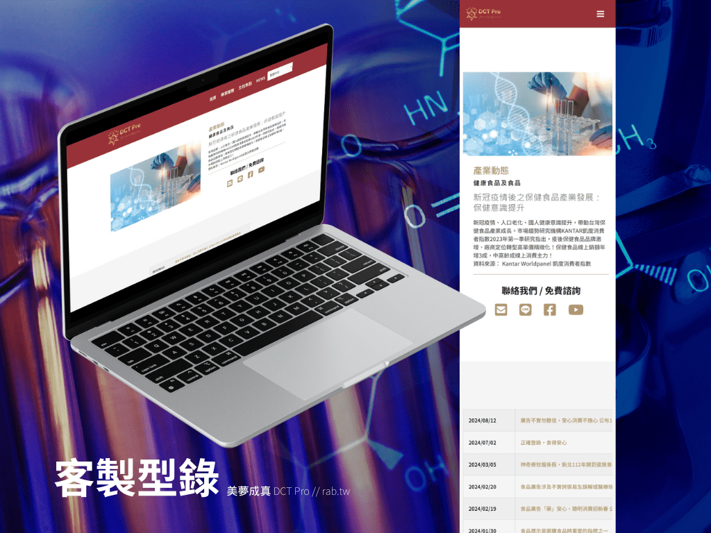 客戶選擇半客製架站架設形象網站,並追加製作客製型錄,客戶在我們的精選模板中挑選了一款心儀的網站版面,之後提供我們符合公司本身視覺形象的圖文內容以及調整細節,由我們團隊進行替換、調整模板,讓網站更能滿足客戶對於專業形象展示的需求。