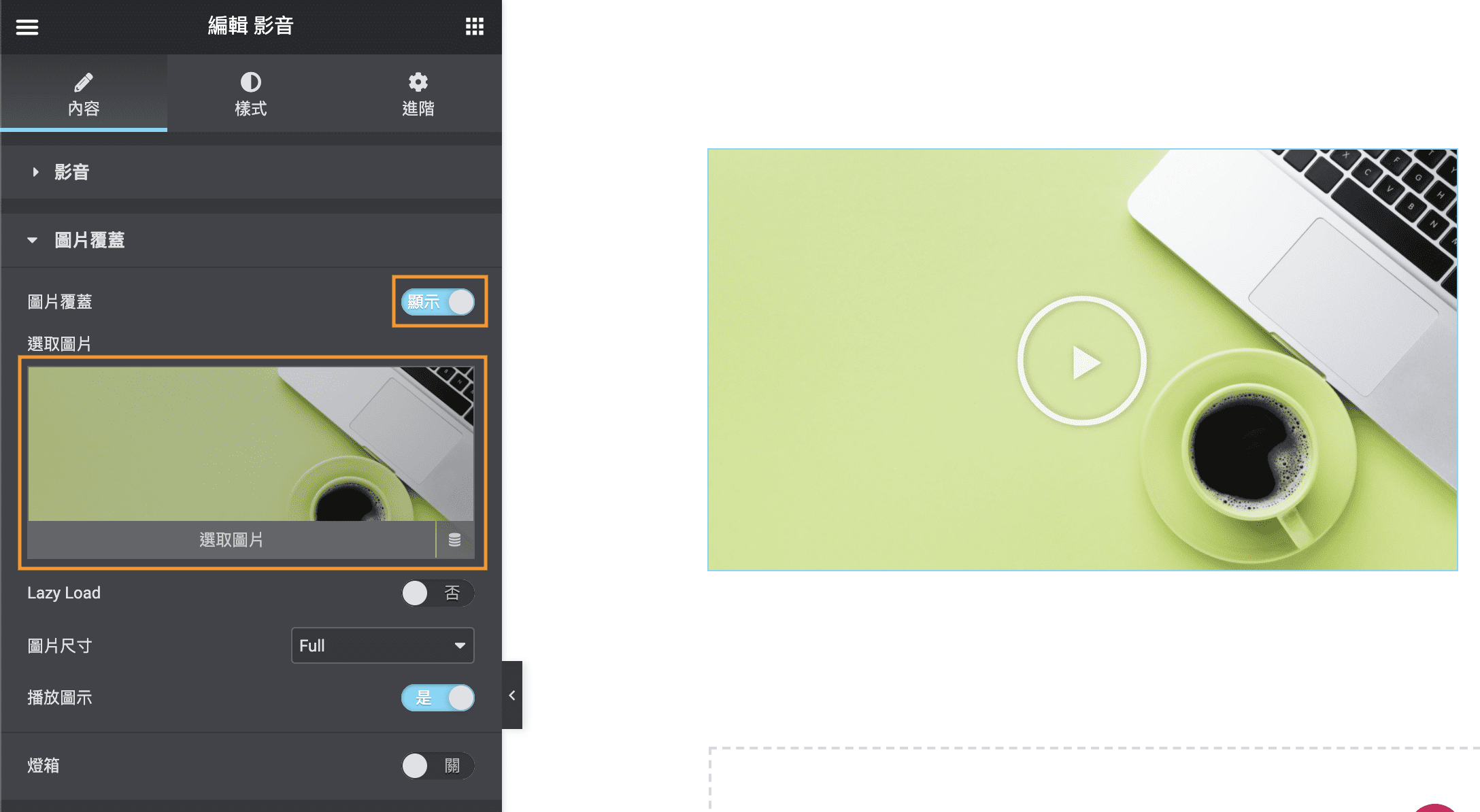 編輯 Elementor 影音小工具