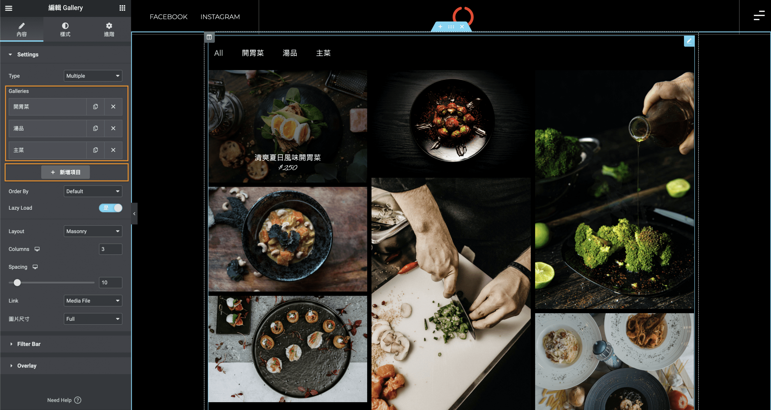 左側編輯區域顯示的是分類,也可以新增分類,分類標題點開後就可以編輯圖片。