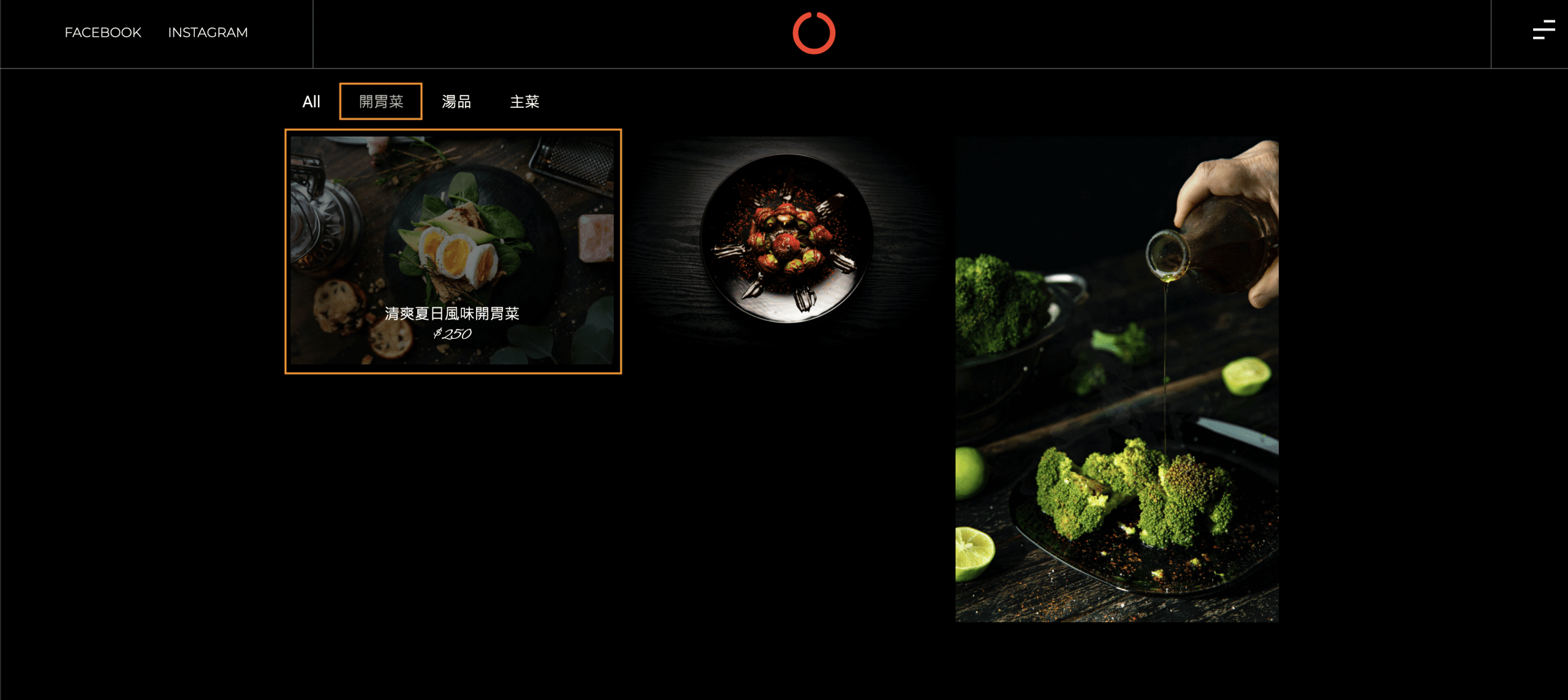 點選分類開胃菜後,就會剩下開胃菜的圖片,而這裡也設定滑鼠游標滑過圖片時會顯示文字介紹。