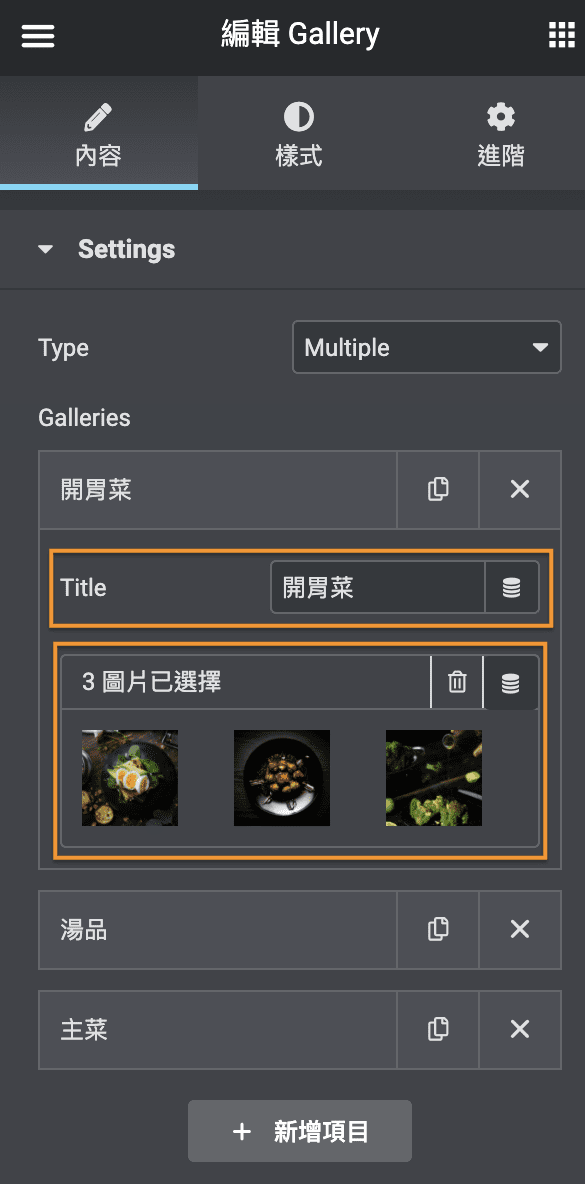 Title可以編輯分類名稱,點選圖片區可以編輯圖庫。