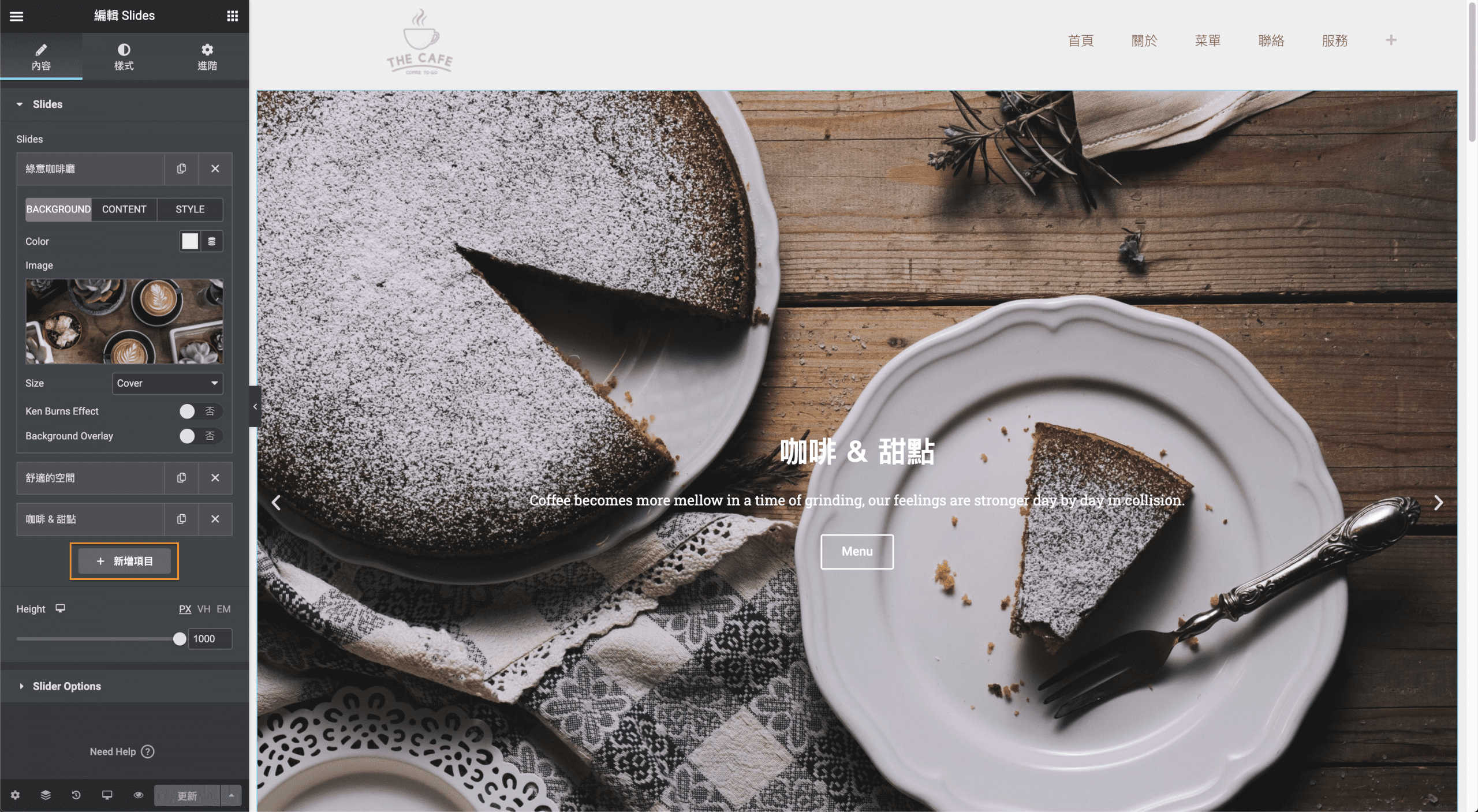 目前有三張輪播圖,因此有三個項目,點按項目之後就可以編輯圖片及圖中的文字。