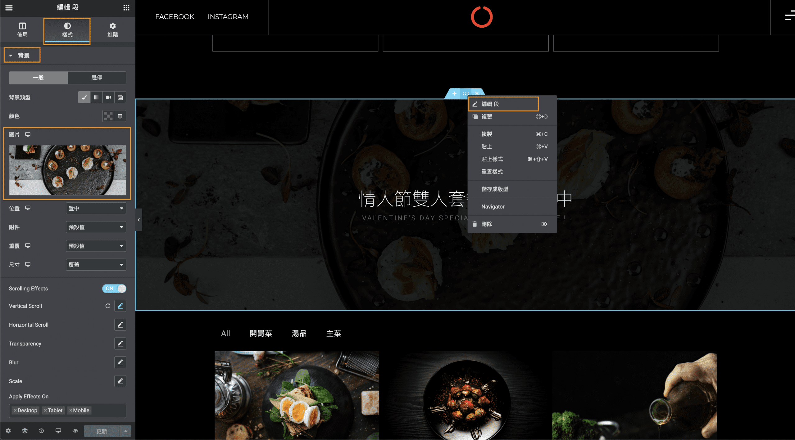 在左側編輯區域上方點選樣式,樣式下的背景就是更改圖片的地方。欲修改文字部分的話,只要在文字上按右鍵編輯就可以了。