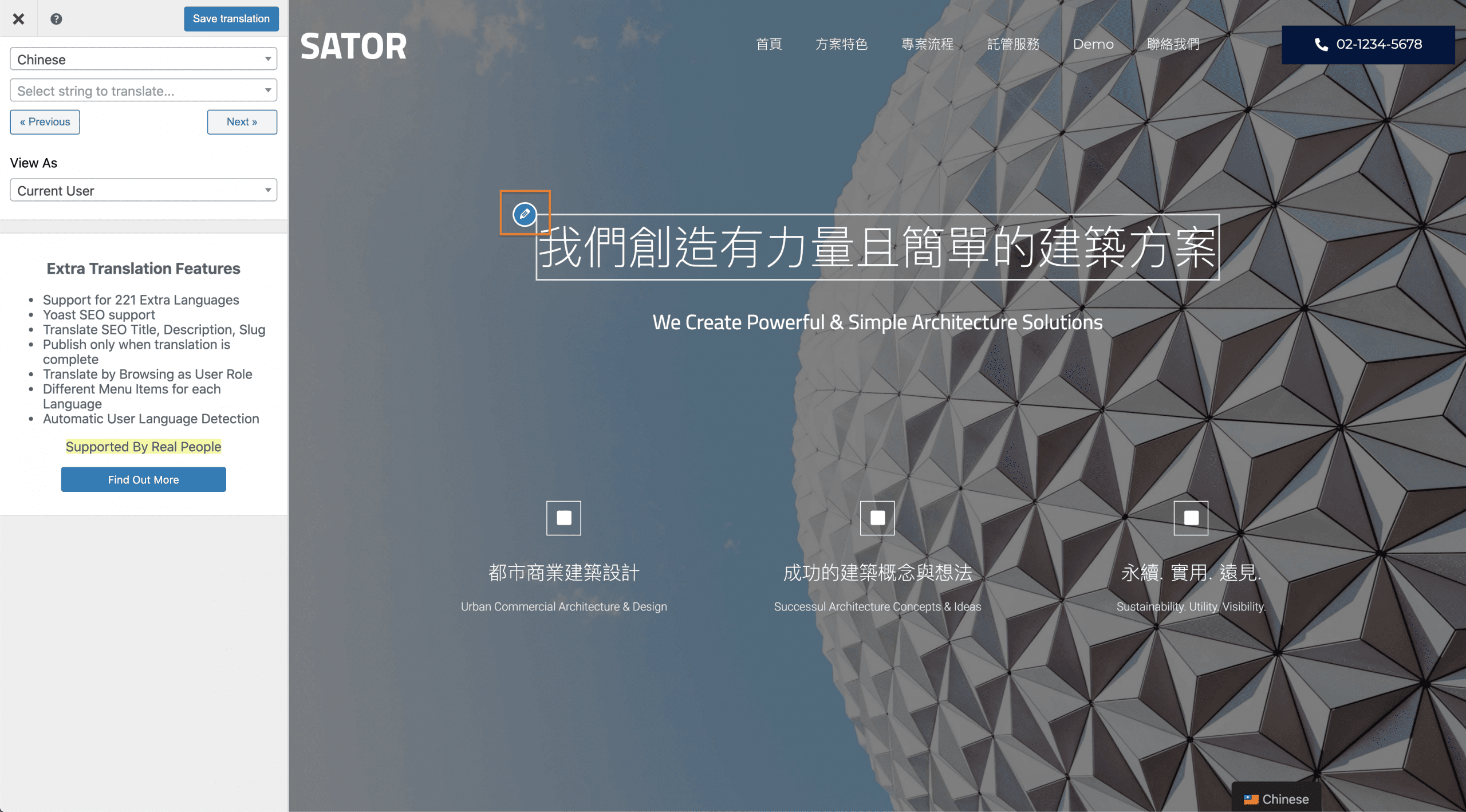 我們使用 TranslatePress 外掛,可以很直觀的修改各國語言翻譯,也非常容易操作,你也可以自行完成修改編輯!