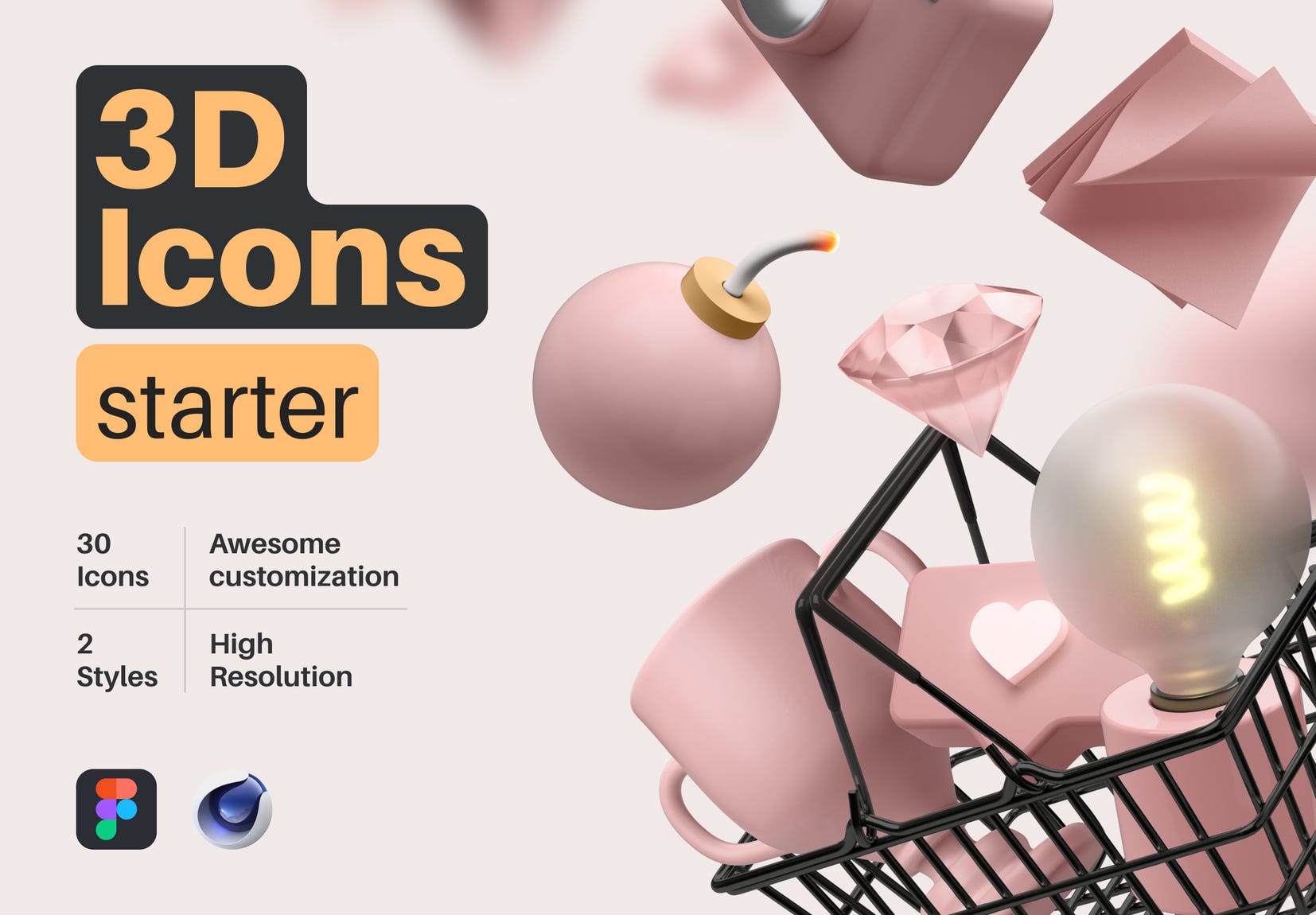 Arkistudio 提供各種 3D 圖標組,可以輕鬆定制並在 Figma 中更改。他們將小組分為不同的類別,以迎合不同類型的項目,僅舉幾例——商業、金融、愛情等。