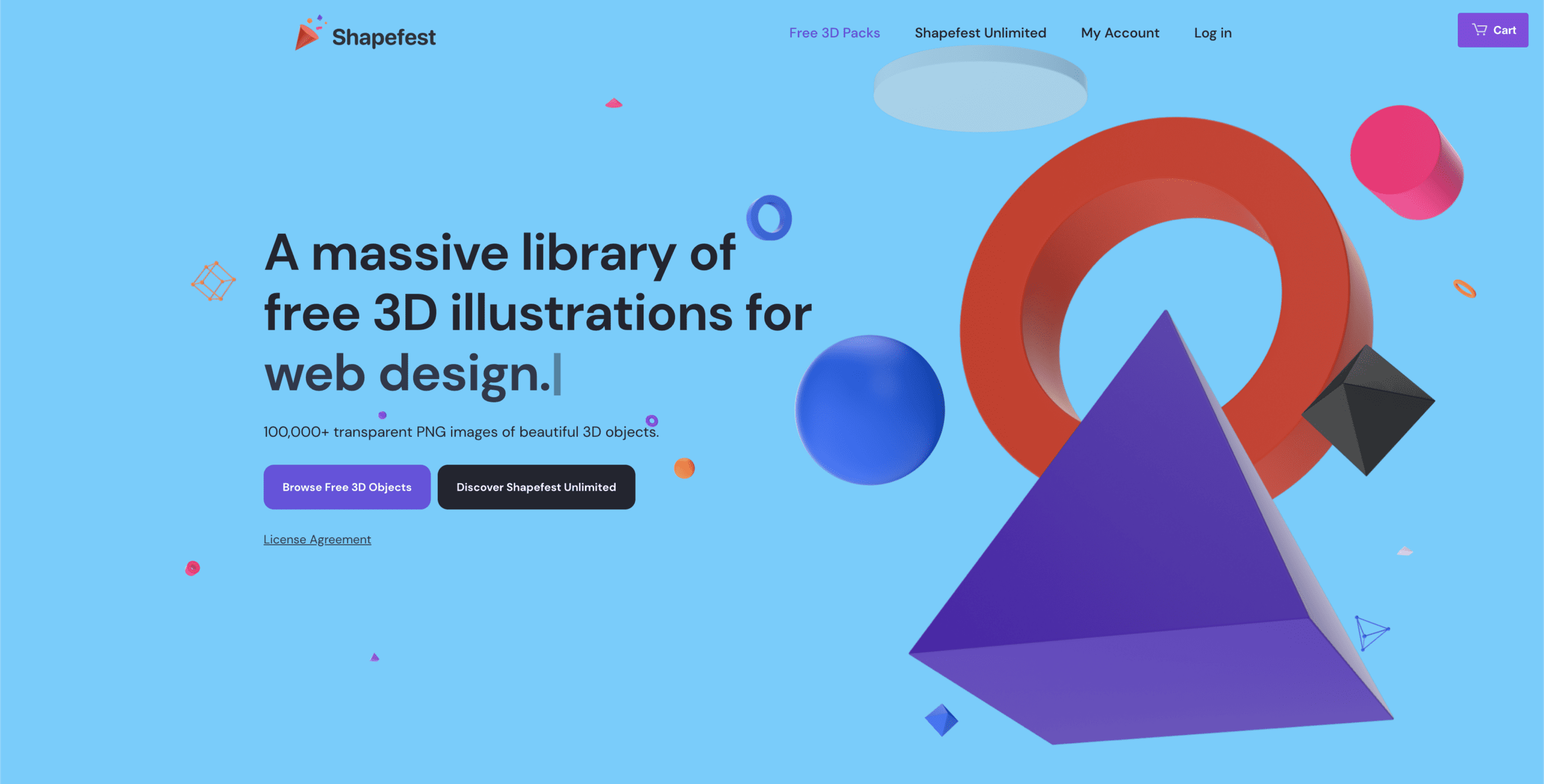 在 Shapefest 上,您會發現 Joseph Angelo Todaro 設計的 3D 元素,您可以免費下載許多高質量 PNG 格式的 3D 形狀和字母。