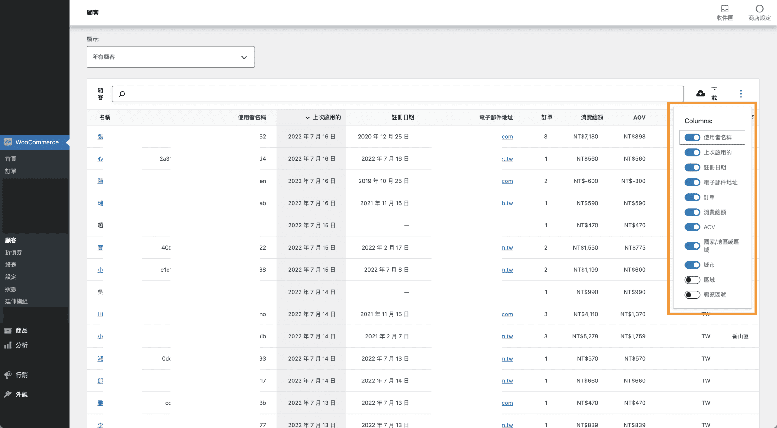 而在最右側 三個點點icon 可以選擇客戶列表要顯示哪些資訊。