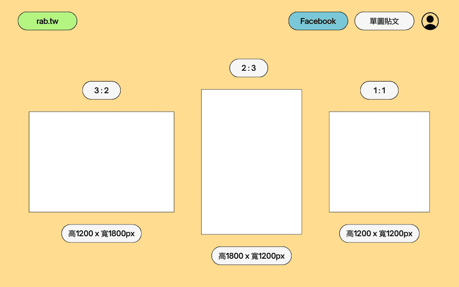- 長方形貼文尺寸為 1200 x 1800 像素(px),比例為 2:3。