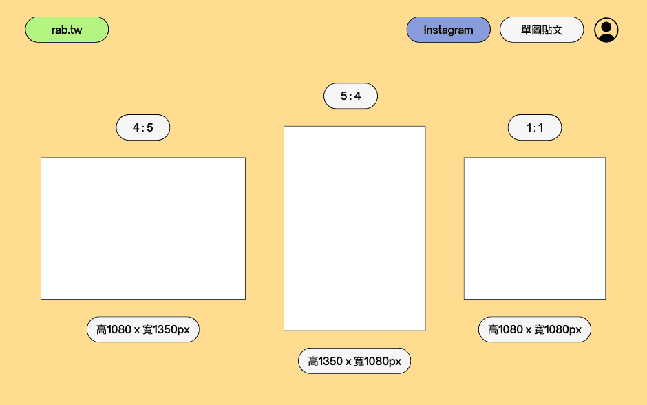 - 長方形貼文尺寸為 1080 x 1350 像素(px),比例為 4:5。