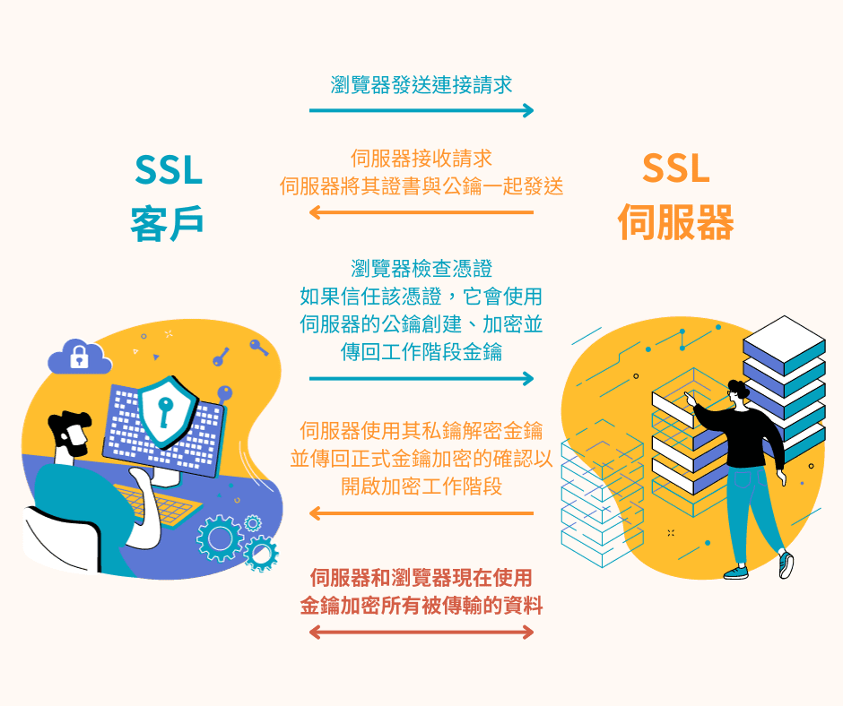 SSL就像一個保護數據的專用鎖,它可以在訪客的瀏覽器與網站或應用程式之間確保安全連接,用於確保數據加密傳遞。此外,可以對網頁進行身份驗證,以便用戶在沒有第三方的情況下保留數據,因此任何未經授權的人都不能輕易監視並進行攻擊。