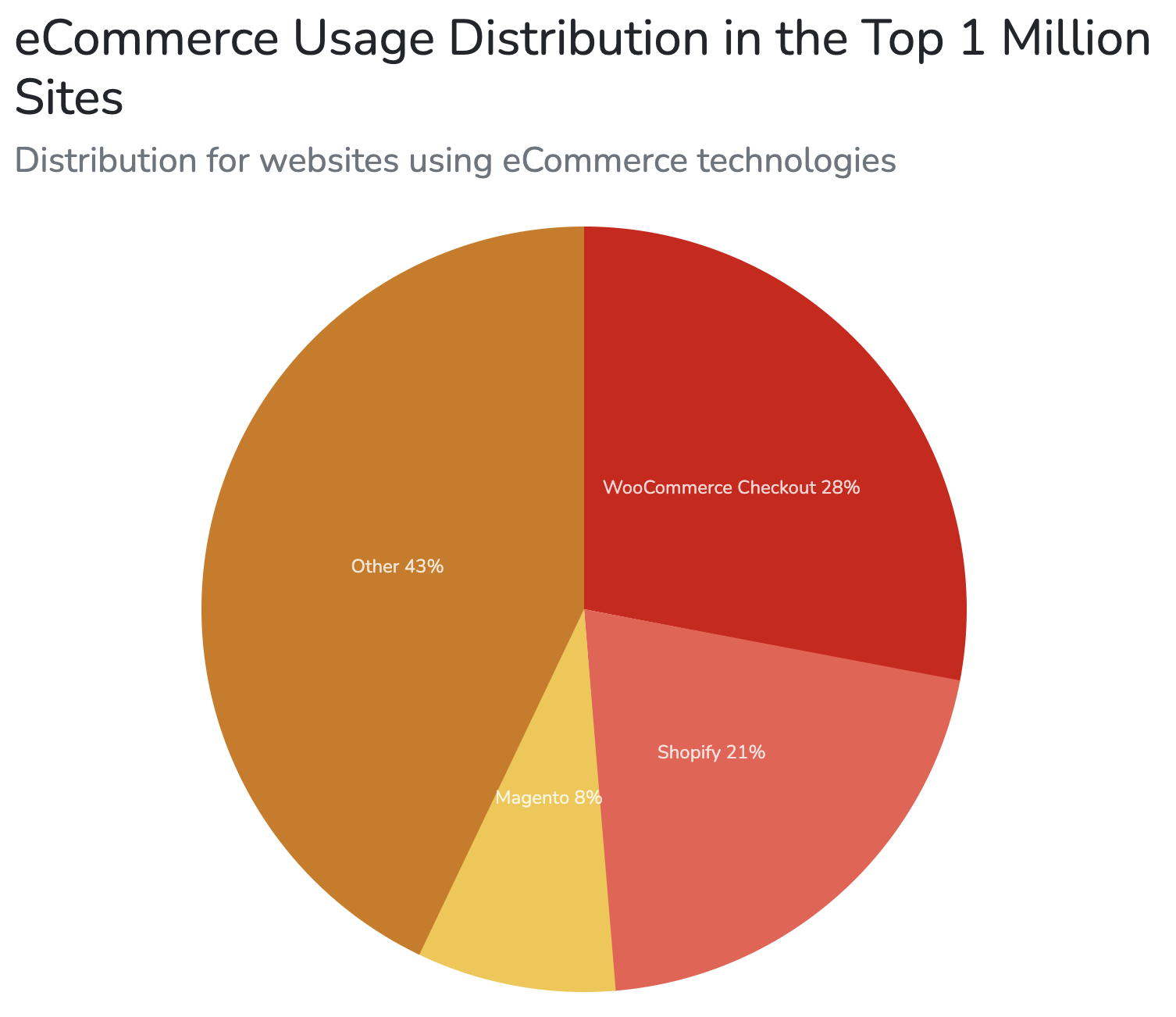 目前,WooCommerce 除了是建構在全世界最多人使用的網站系統 WordPress 上之外,它也是全球最多人使用的電子商務系統。根據 Built With 的統計資料中,在全球前100萬個網站當中,使用WooCommerce 的網站占比高達 28%,第二名則是 Shopify 的 21%。