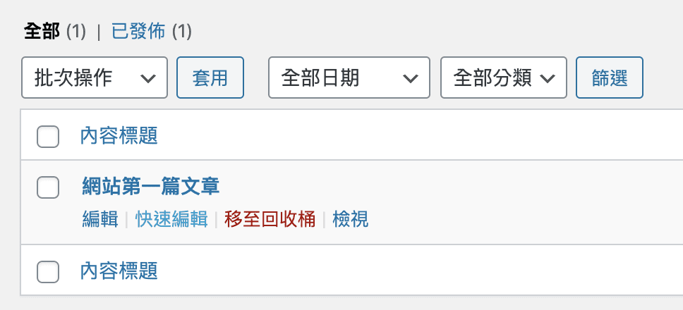 可以直接在原頁面修改文章標題、分類、標籤等等(不會跳轉頁面)。 - 移至回收桶