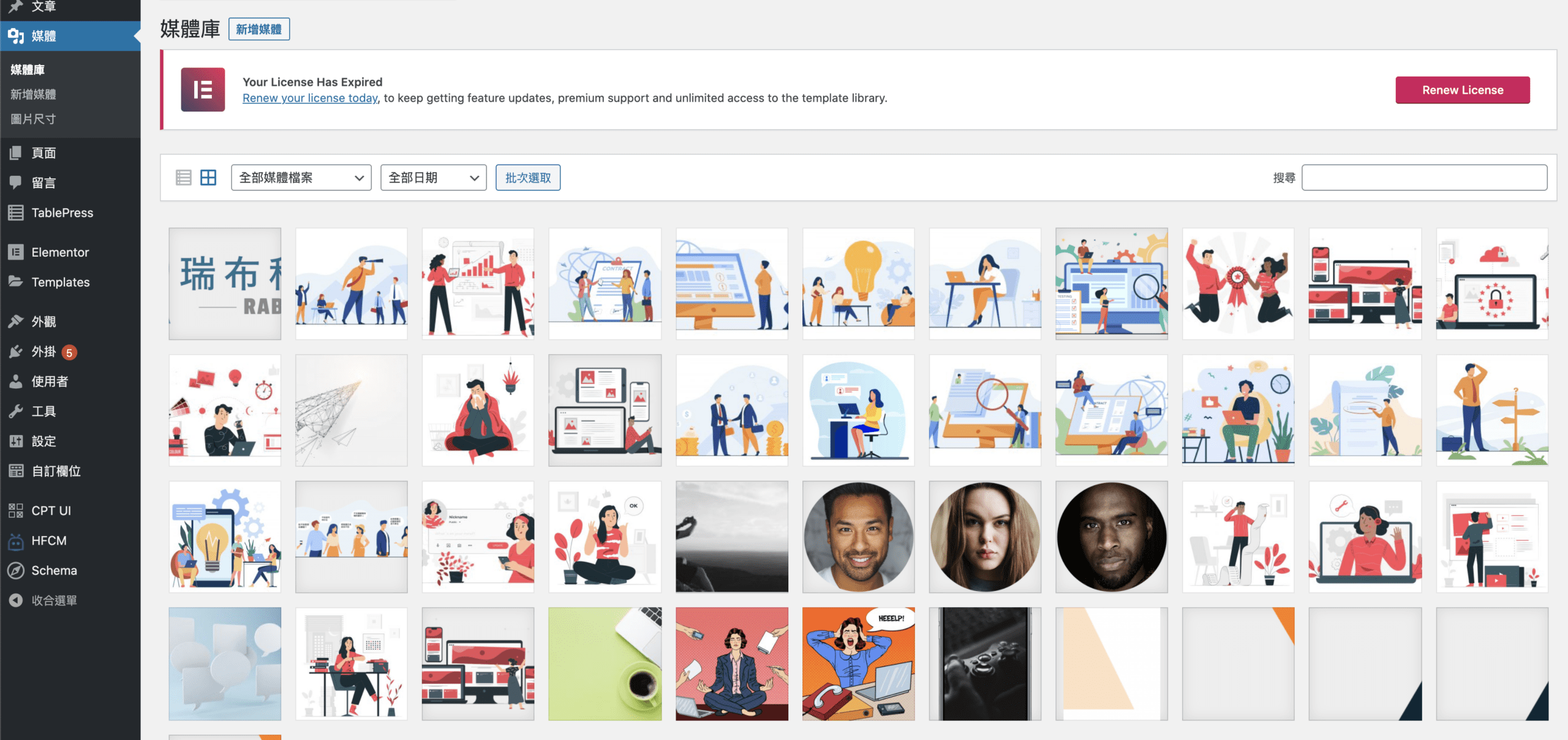 媒體庫是管理你的圖片或其他檔案的地方,你也可以依你的網站內容需求上傳音訊檔或影片檔。