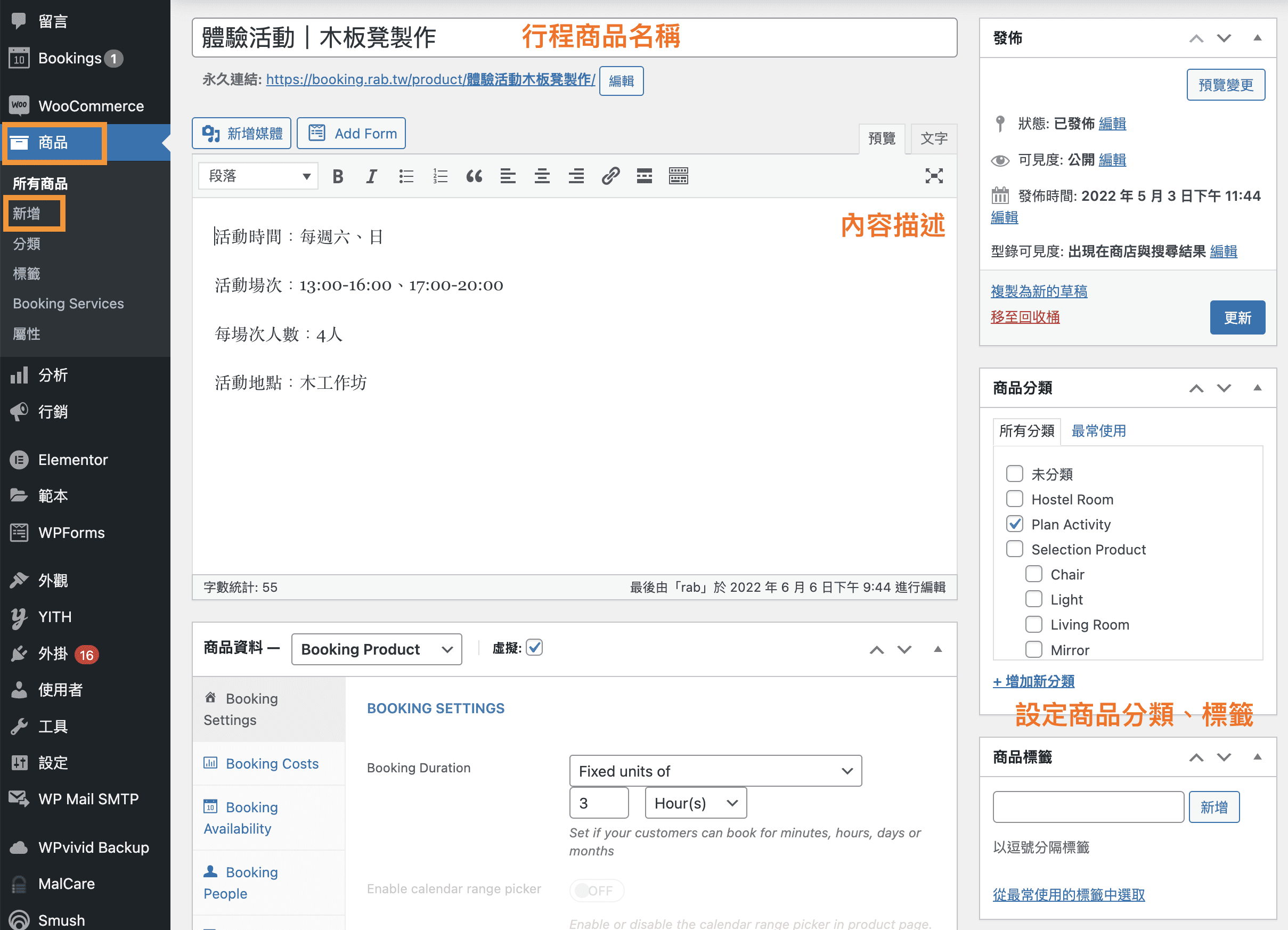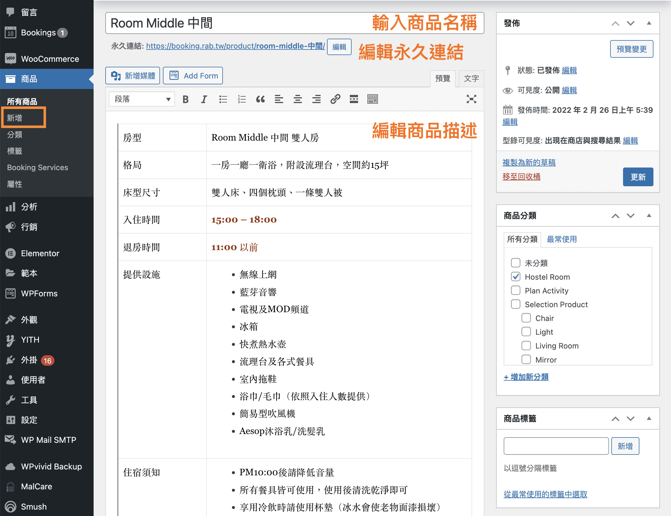 進入網站後台後,到 商品 -> 新增商品,添加新的預約房型商品。