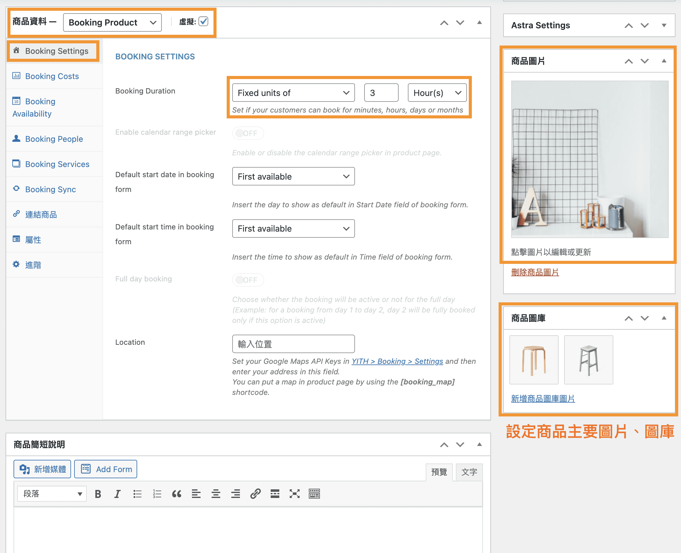需先設定商品名稱、商品永久連結、商品內容描述、簡短說明、商品圖片圖庫等,一般商品都會設定的部分。