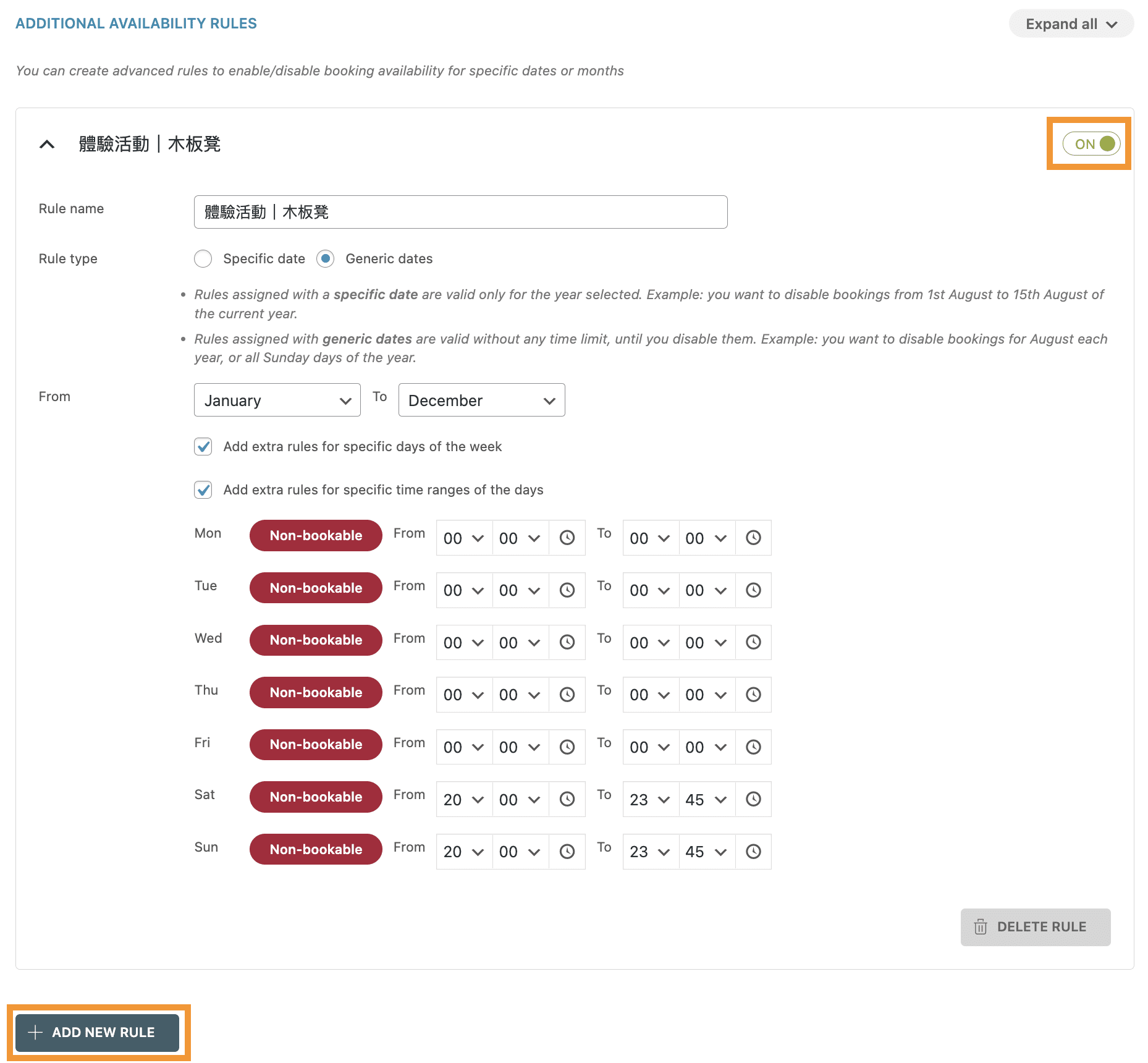 點選 ADD NEW RULE 可以新增新的預約規則。